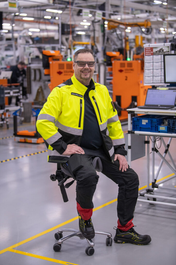 Siistissä ja valoi­sassa 6. hallissa työsken­telee kerral­laan viiti­sen­kym­mentä kokoon­pa­nijaa kahdessa vuorossa. Uusitalo toimii kokoon­panon työsuo­je­lua­sia­mie­henä. Hänen mukaansa Agco Powerilla on hyvät työolo­suh­teet, sillä työnan­taja on panos­tanut viime vuosina työer­go­no­miaan ja työtur­val­li­suu­teen. Kiitosta häneltä saa myös työpaikkaruokala.