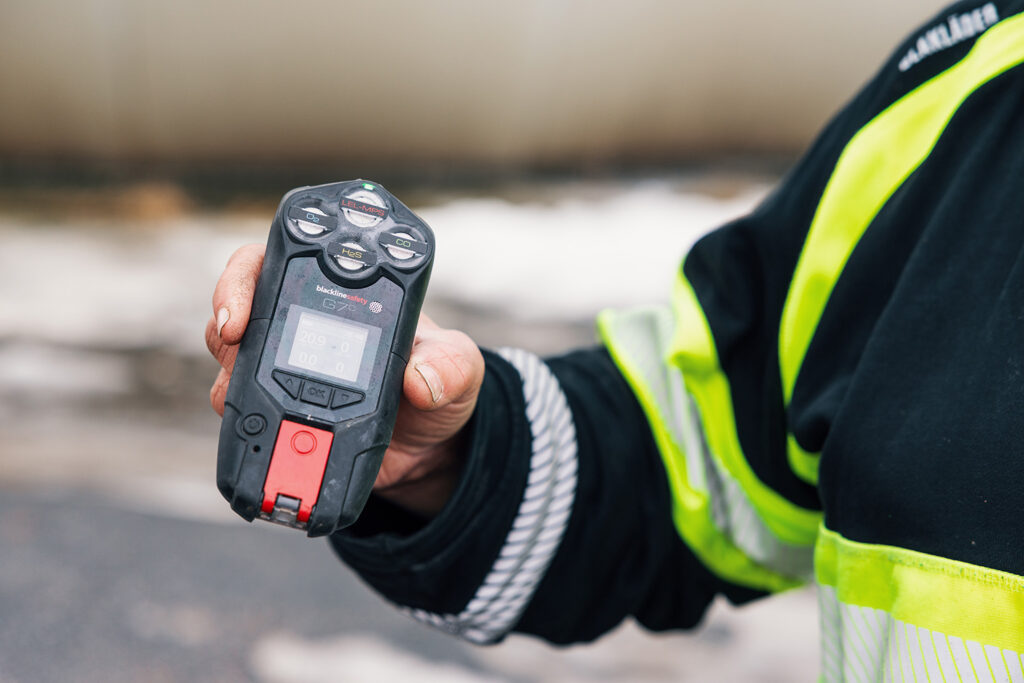 Arbetarnas bästa vän fungerar som kommu­ni­ka­tions­medel men också som varningsklocka som kan varna för höjda gashalter i luften.
