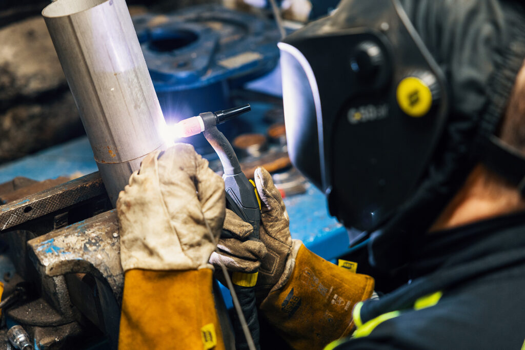 Tommy Holmblad gör bedöm­ningen att fem procent av jobbet går ut på svets­ning. I hans tidigare jobb var det närmare hundra.