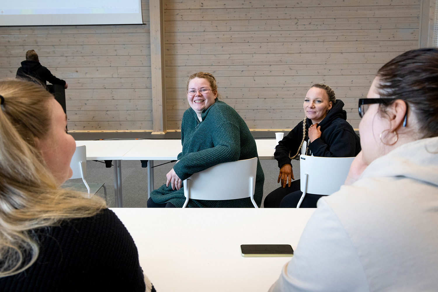 Kouluttajat käyttävät enimmäkseen suomea, mutta vaihtavat tarpeen tullen englanniksi. Haja Khunti ja Robert Tuyishime pitävät tapaa oikeana ja samalla hyvänä keinona oppia lisää suomea.